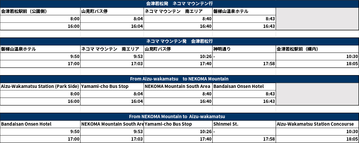 ※今シーズン磐梯町駅便の運行はございません。 -